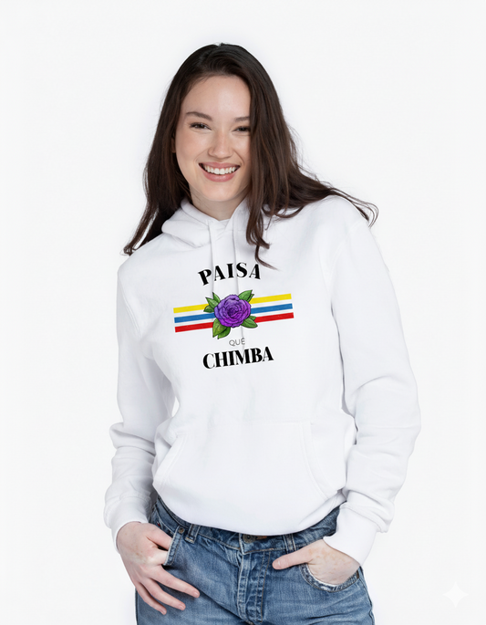 Hoodie “Paisa Qué Chimba – Flor & Tricolor”