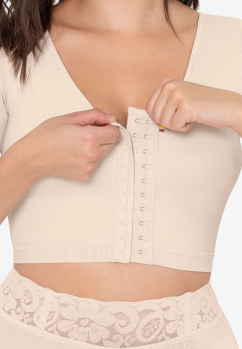 Permite un mayor cubrimiento del busto brindando soporte y ayudando en el primer momento de tu recuperación.