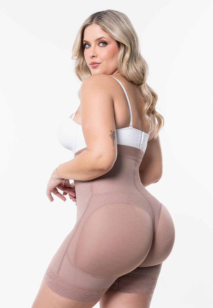 Esta versión no solo te ayuda a mantener el abdomen plano, sino que redefine tu cintura de una manera impresionante, dándote una horma perfectamente definida que te hará sentir poderosa. El refuerzo abdominal te da el control que necesitas para que cada curva se vea y se sienta increíble. Su sistema de apertura, que une la abrochadura con el cierre perineal, hace que ponértela sea más cómodo, y la convierte en una opción ideal también para momentos postquirúrgicos. La parte de la cola, diseñada con una forma más redonda, realza tus glúteos, creando un efecto más firme y definido. Con un nivel de compresión más alto, sentirás que todo se mantiene en su lugar, y te verás y te sentirás espectacular.