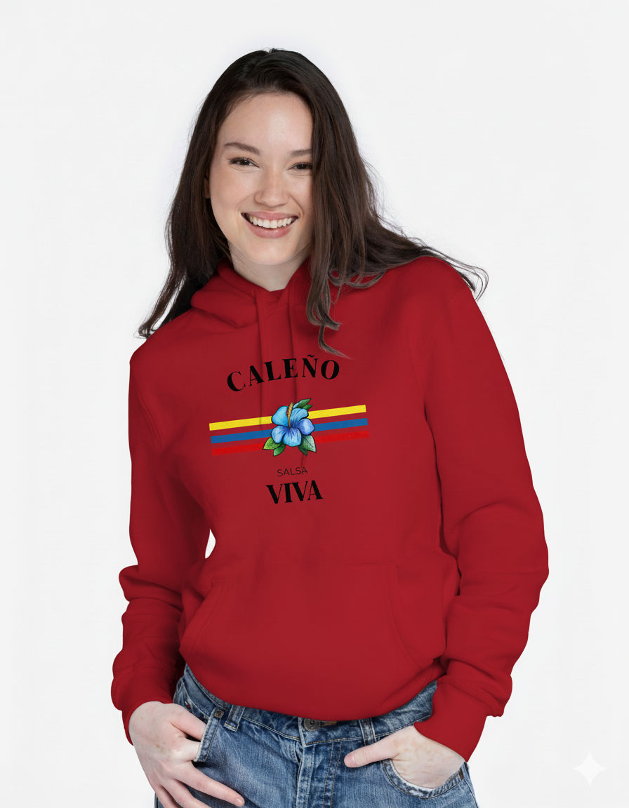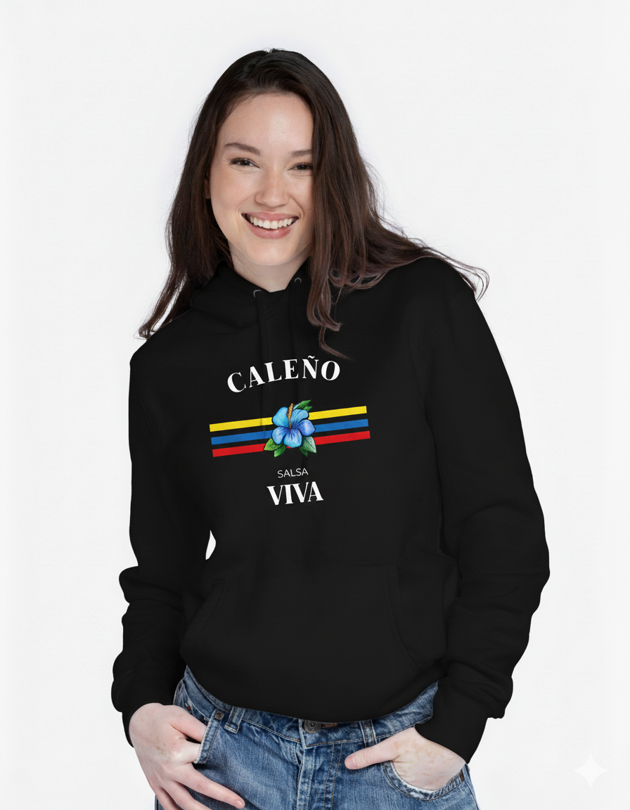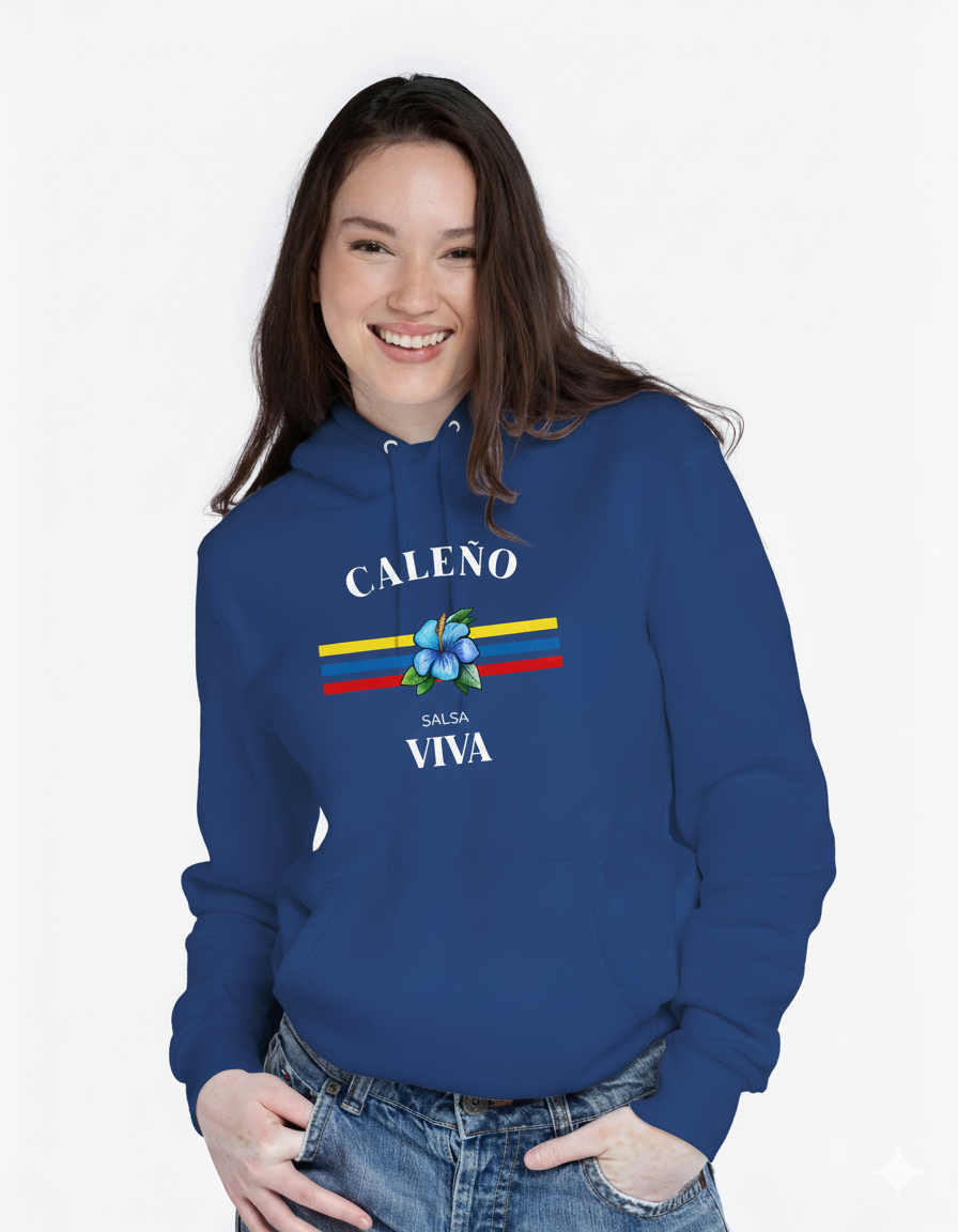 Alegría, ritmo y orgullo del Valle. El Hoodie “Caleño Salsa Viva – Flor & Tricolor” celebra la esencia de Cali con un diseño lleno de energía: tipografía CALEÑO / SALSA VIVA, franjas tricolor y una flor tropical que refleja el alma alegre del Pacífico. Fleece interior suave, corte regular unisex y detalles que transmiten sabor colombiano.