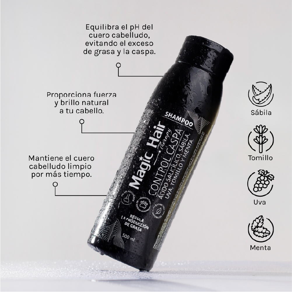 Imagina un cuero cabelludo libre de escamas y picazón, donde tu cabello luce limpio y lleno de vitalidad. Te presentamos el shampoo para la caspa Magic Hair, formulado específicamente para restaurar el equilibrio de tu cuero cabelludo de manera efectiva y natural. Nuestra avanzada fórmula está diseñada para actuar directamente sobre la raíz del problema.