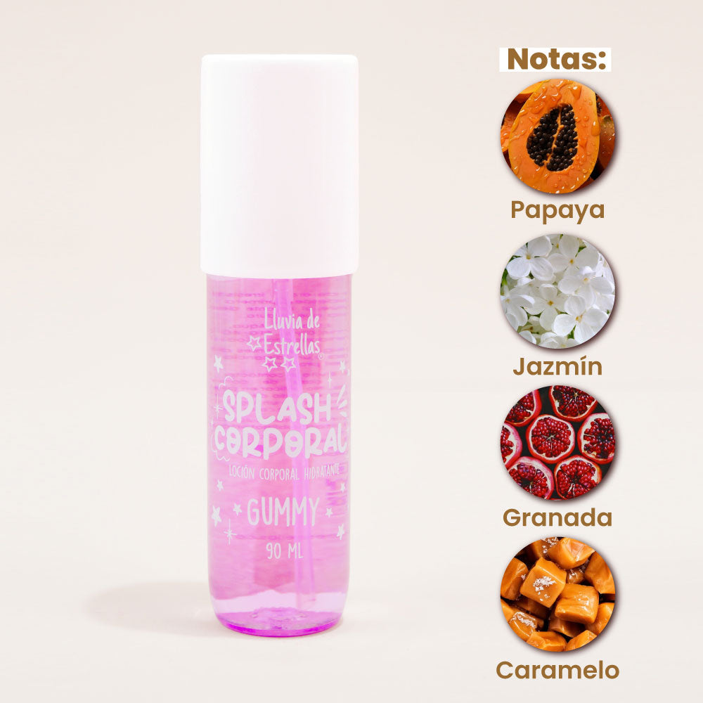 Desde la primera aplicación sentirás la jugosidad de la papaya, la granada y el agave, que se combinan con un toque floral de jazmín y violeta. Finalmente, el caramelo y el coco envuelven con un aroma cremoso y cálido que convierte a Gummy en un splash adictivo. Ideal para quienes buscan un aroma juvenil y divertido que ilumine cualquier momento del día.