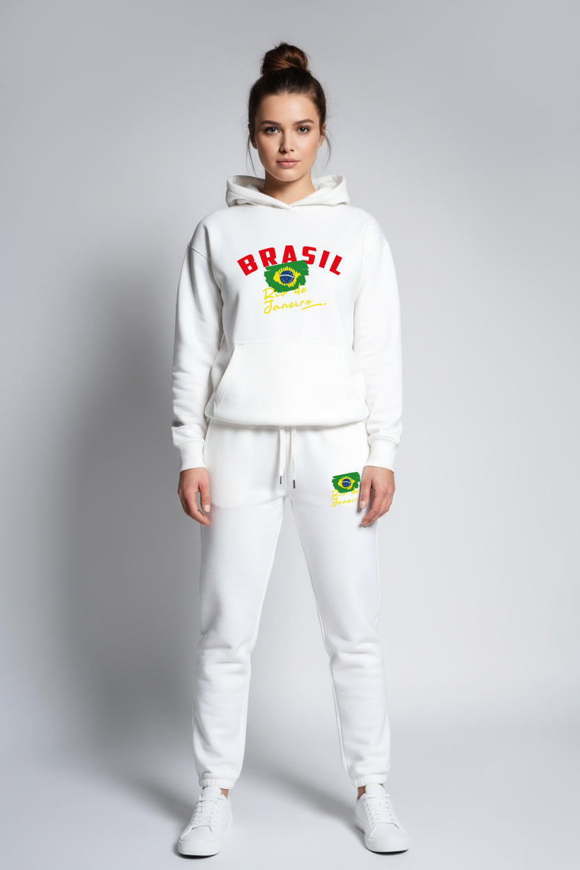 Comodidad y estilo en un solo look: hoodie + jogger con gráfico “Brasil • Rio de Janeiro”. Perfecto para calle, viaje o alentar con flow. 🇧🇷