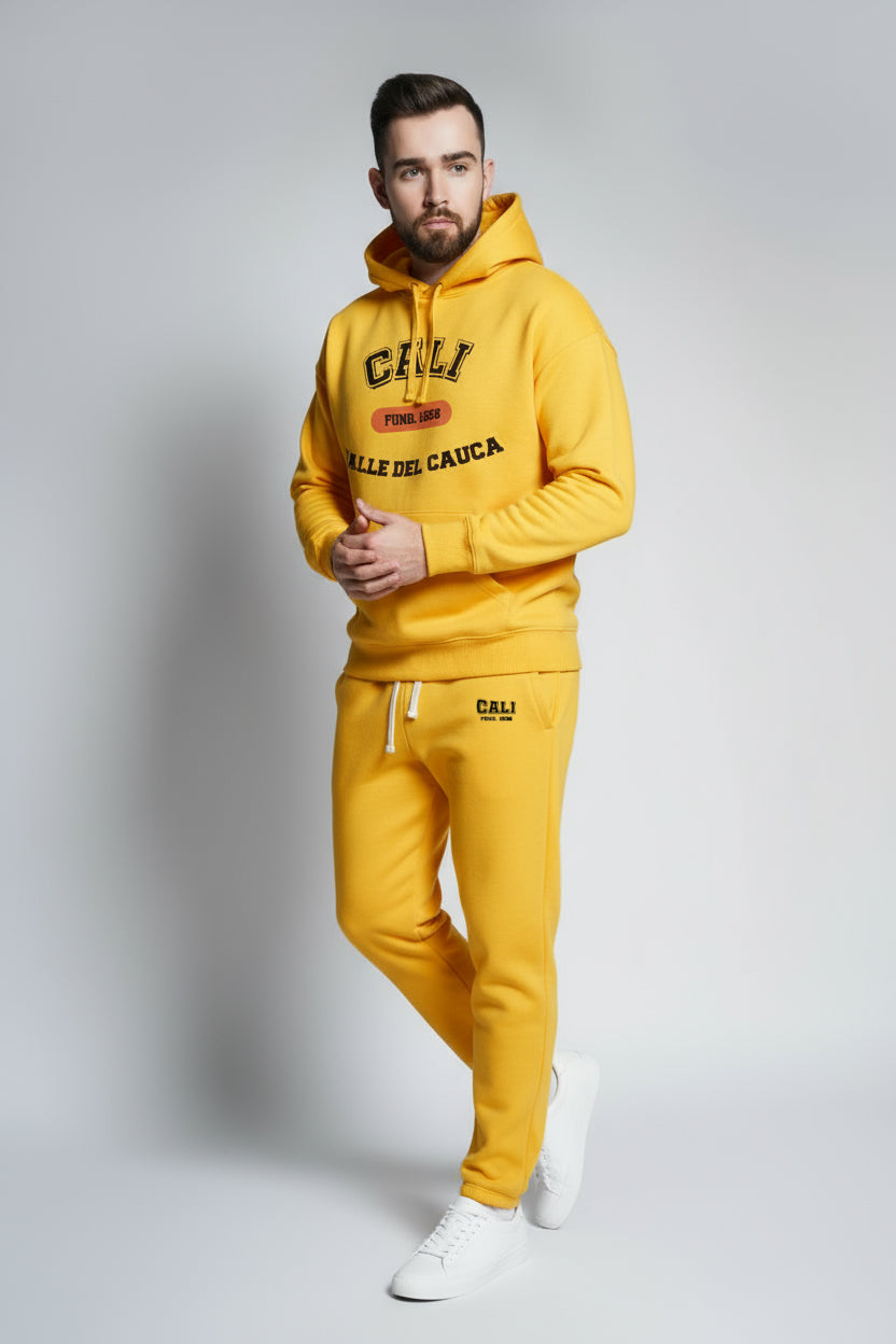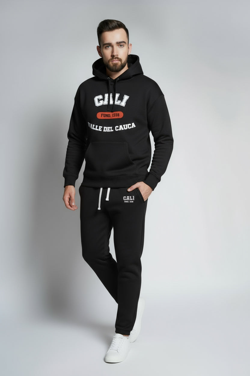 Comfy con sabrosura caleña. El Conjunto “Cali 1536” incluye hoodie con bolsillo canguro y jogger con pretina ajustable. Fleece suave, fit regular unisex y arte collegiate con leyenda CALI • FUNB. 1536 • VALLE DEL CAUCA centrada en el pecho y mini print coordinado en la pierna. Ideal para clase, viaje o relax con estilo del Valle.