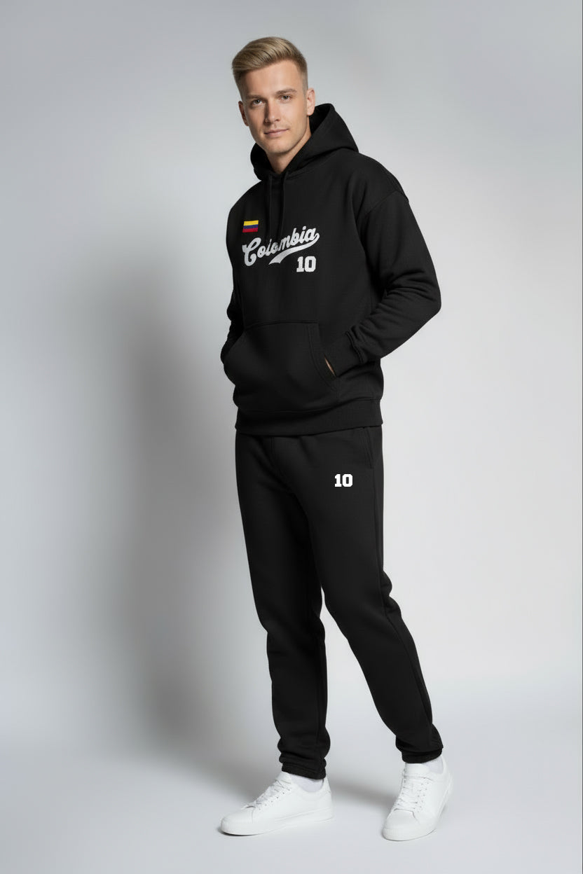 Comodidad y estilo en un solo set: hoodie + jogger con detalle “Colombia 10”, ideal para calle, viaje o descanso. 🇨🇴⚽