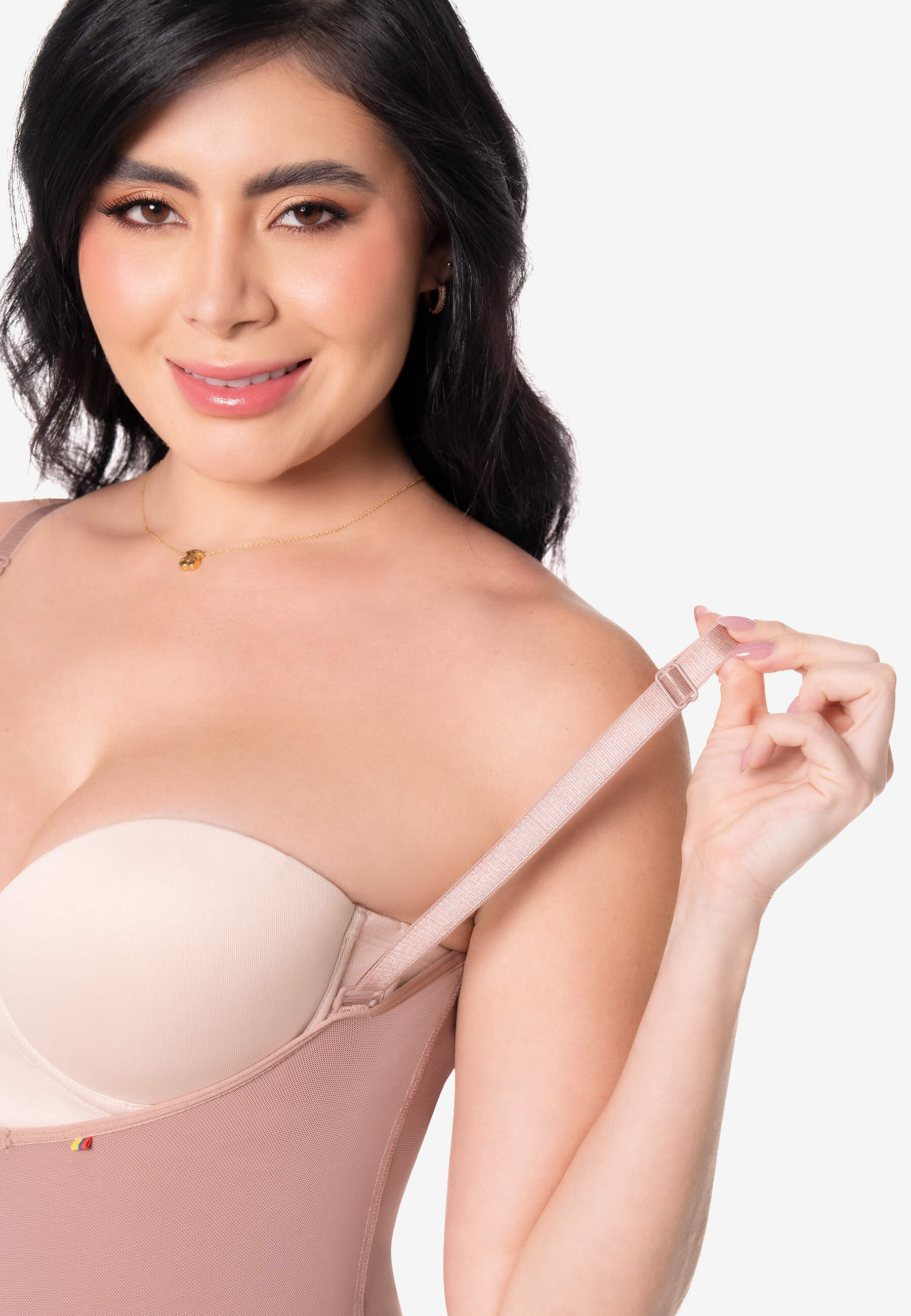 El cierre frontal hace que ponértela sea rápido y sin estrés, y su diseño con espalda en U moldea toda esta zona para que luzcas siempre definida. Pero lo que la pone en otro level es su efecto cuerpo de guitarra: abdomen liso y estilizado, y glúteos más levantados y con volumen, listos para robar miradas.