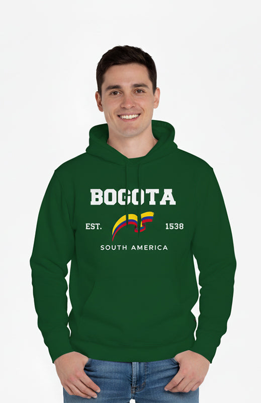 Lleva el orgullo capitalino con estilo. El Hoodie “Bogotá EST. 1538 – South America” combina el espíritu universitario con un toque moderno. Con tipografía varsity y detalle gráfico inspirado en la bandera, este buzo rinde homenaje a la historia y energía de la capital. Perfecto para clima frío, viajes o un look urbano con identidad.