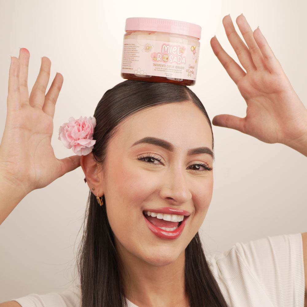 Miel Rosada viene de la colmena a tu cabello con una reparación profunda, restaurando la suavidad, brillo y vitalidad natural. Su fórmula combina dos fases en un ritual de belleza inspirado en la magia de las abejas: en el fondo, la miel pura certificada, que conserva intactas sus propiedades humectantes y revitalizantes en cada hebra, y una fase cremosa que envuelve el cabello con nutrición y brillo desde la primera aplicación.