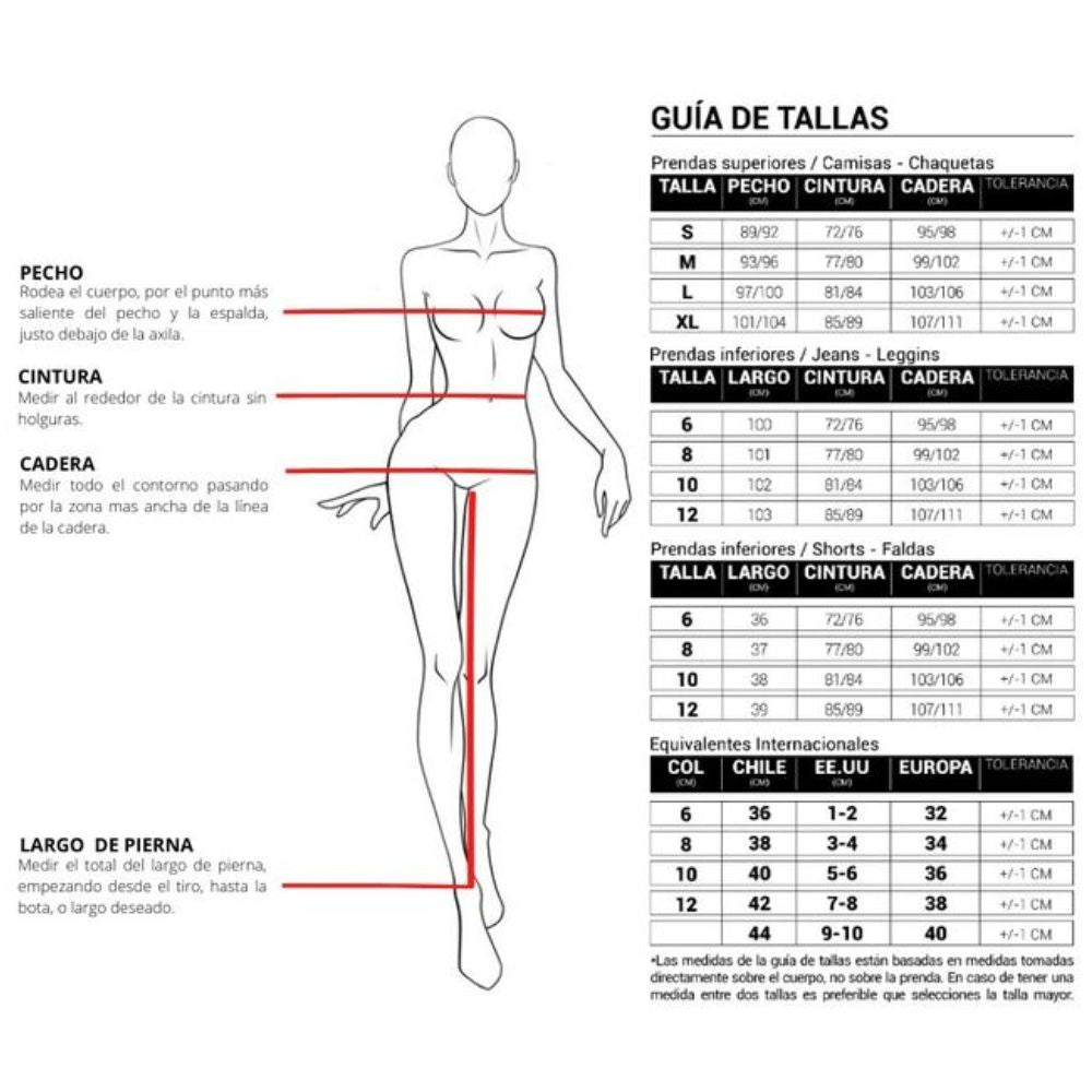 No se aceptan devoluciones en prendas de vestir. Consulta la tabla de medidas antes de comprar y asegúrate de elegir la talla correcta.